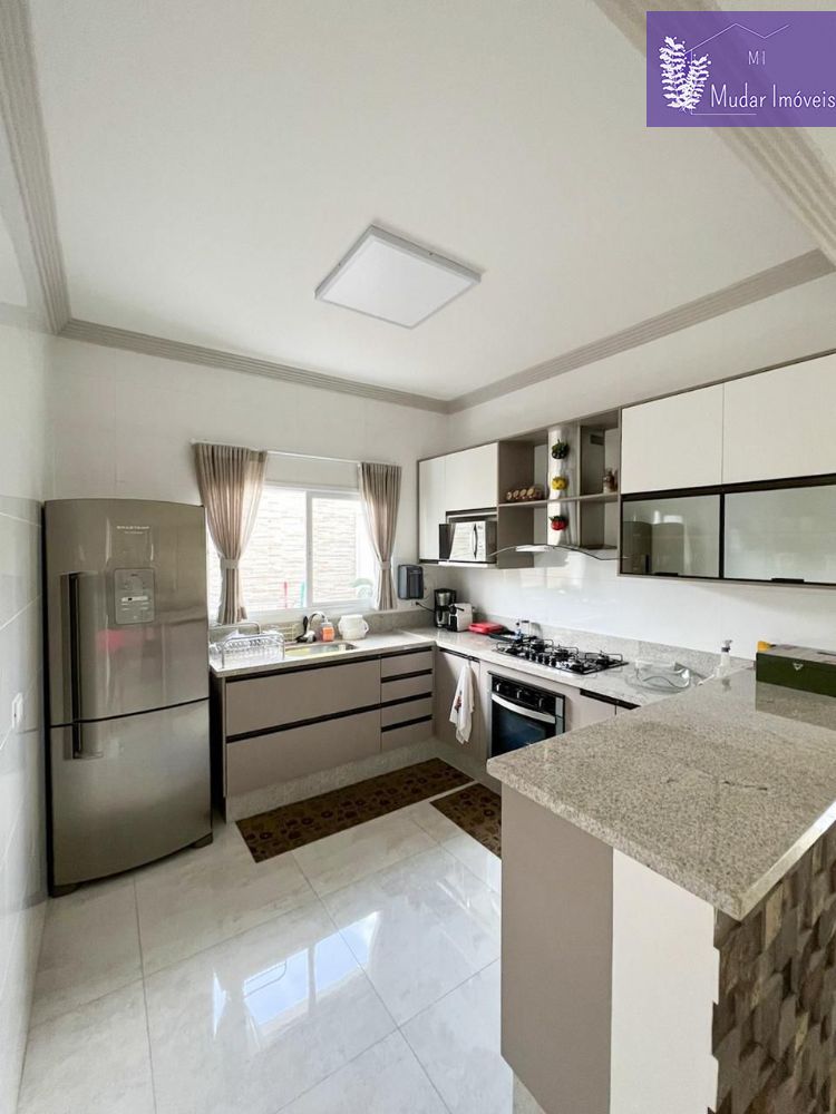 - Cozinha moderna com armário planejado, fogão cooktop, forno embutido e coifa;